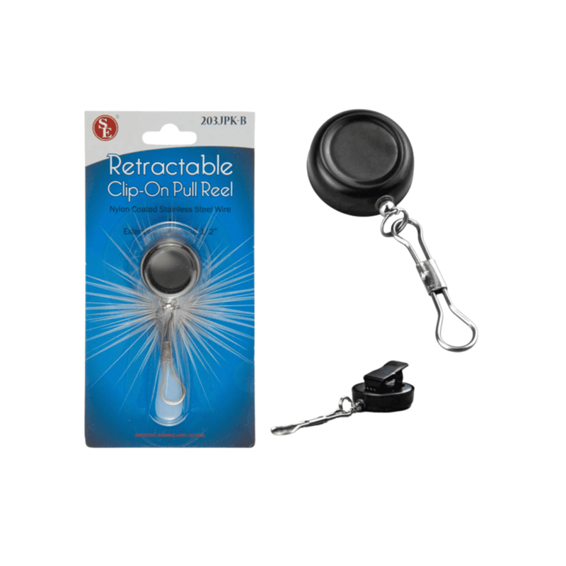 1" Retractable Pull Reel (Black, Clip-On)
